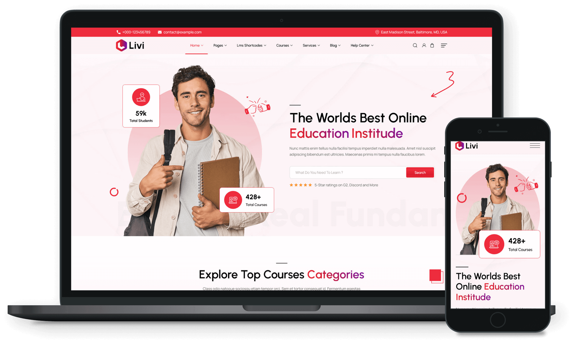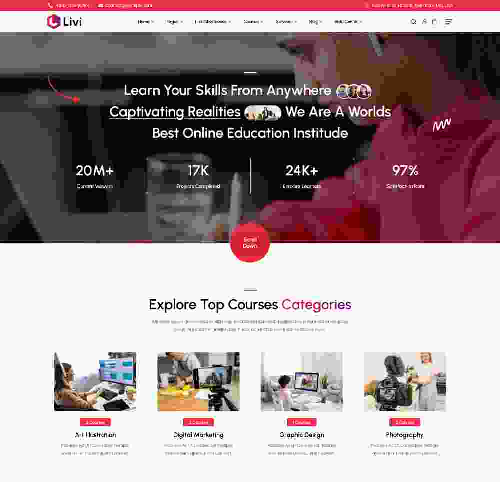 Livi is Fast, Responsive LMS WordPress theme suits best for e-Learning, Education Center, online courses, training centers, Online academy, Online Institute, Online School, College, University, and Online Instructor Websites.